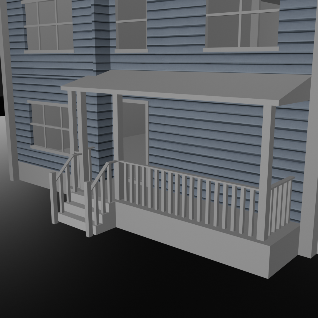 This is a suburban house shell used as an asset when making your games. Comes with walls on the inside so you can lay it out how you want. It is a two-story house with a garage attached on the side. It also has a front porch and a back porch.